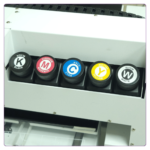 La testina Epson stampa a cinque colori compreso il bianco contemporaneamente